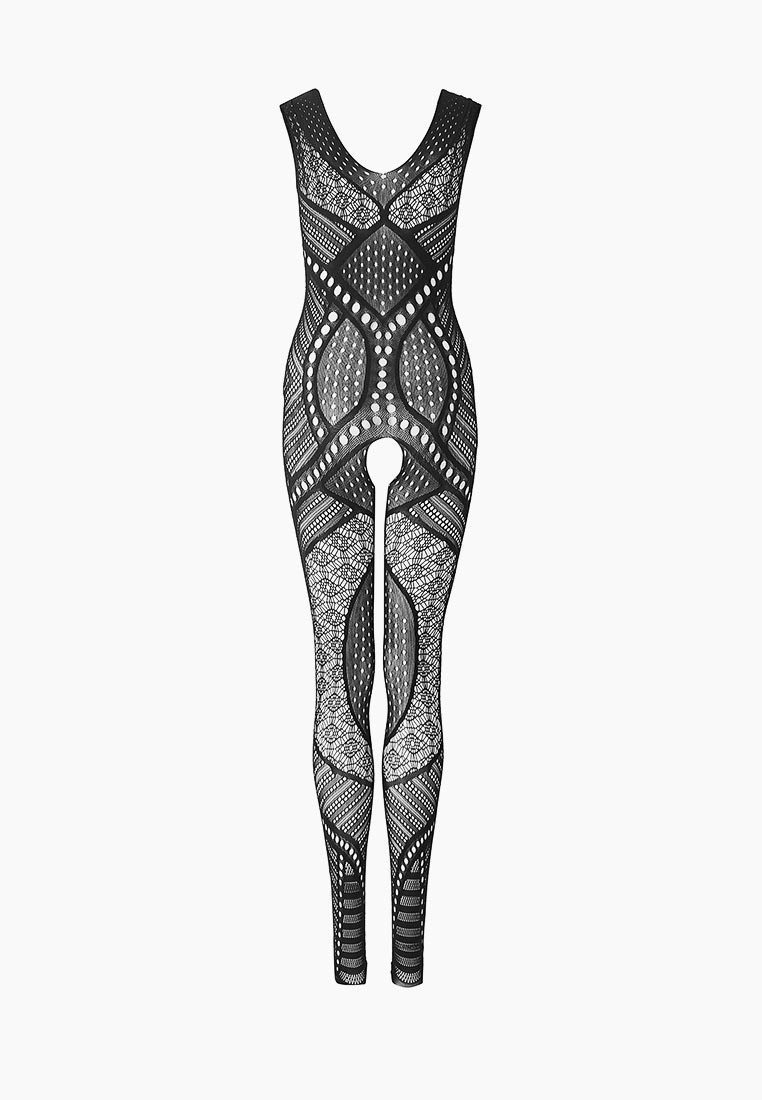 Чёрный комбинезон со сложным геометрическим узором. С интимным доступом. Трусики не входят в комплект!