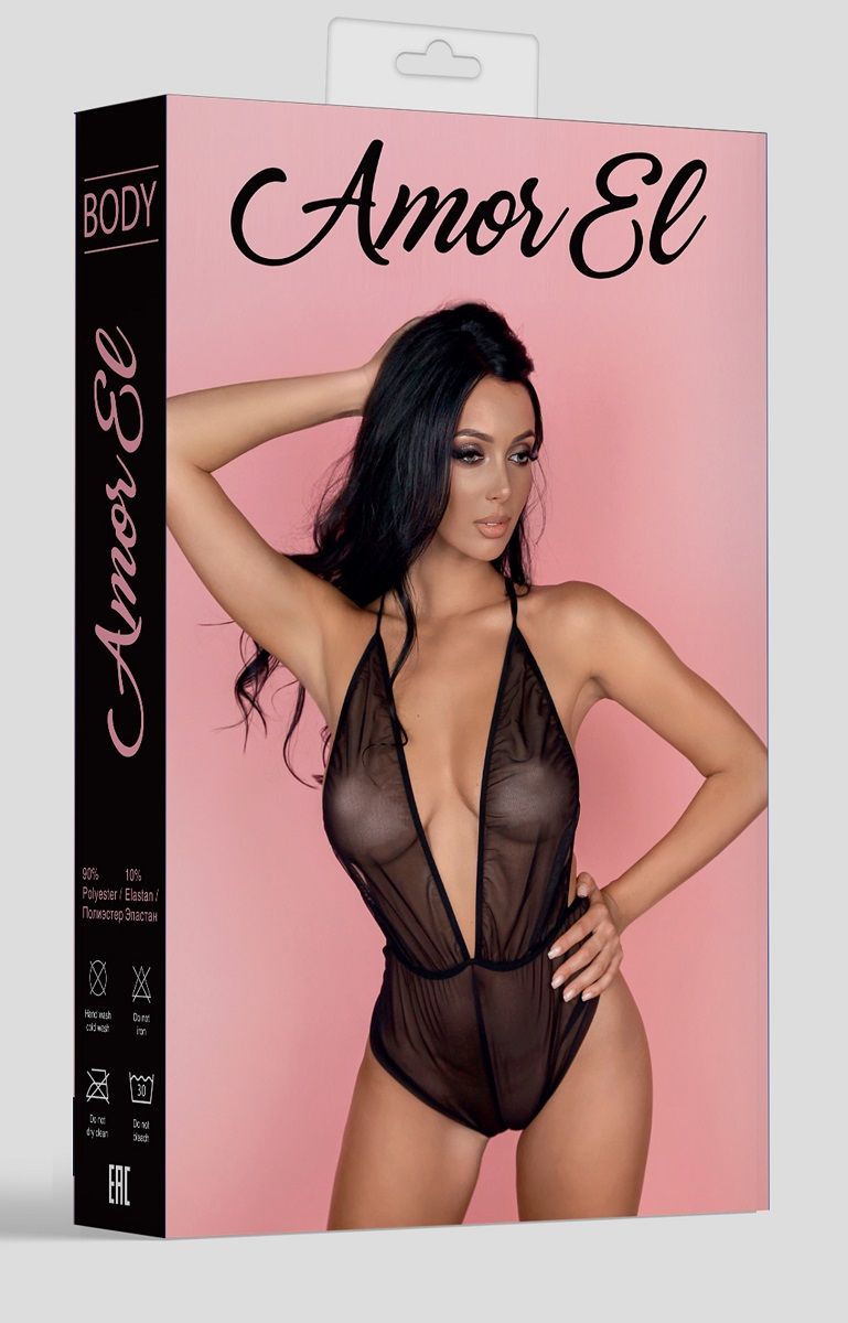 Прозрачный боди с открытой спиной и завязками на шее.