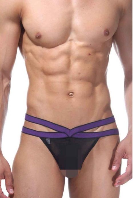 Мужские трусы-стринги из полупрозрачной ткани с открытыми гениталиями. Трусы на двойной широкой резинке.
