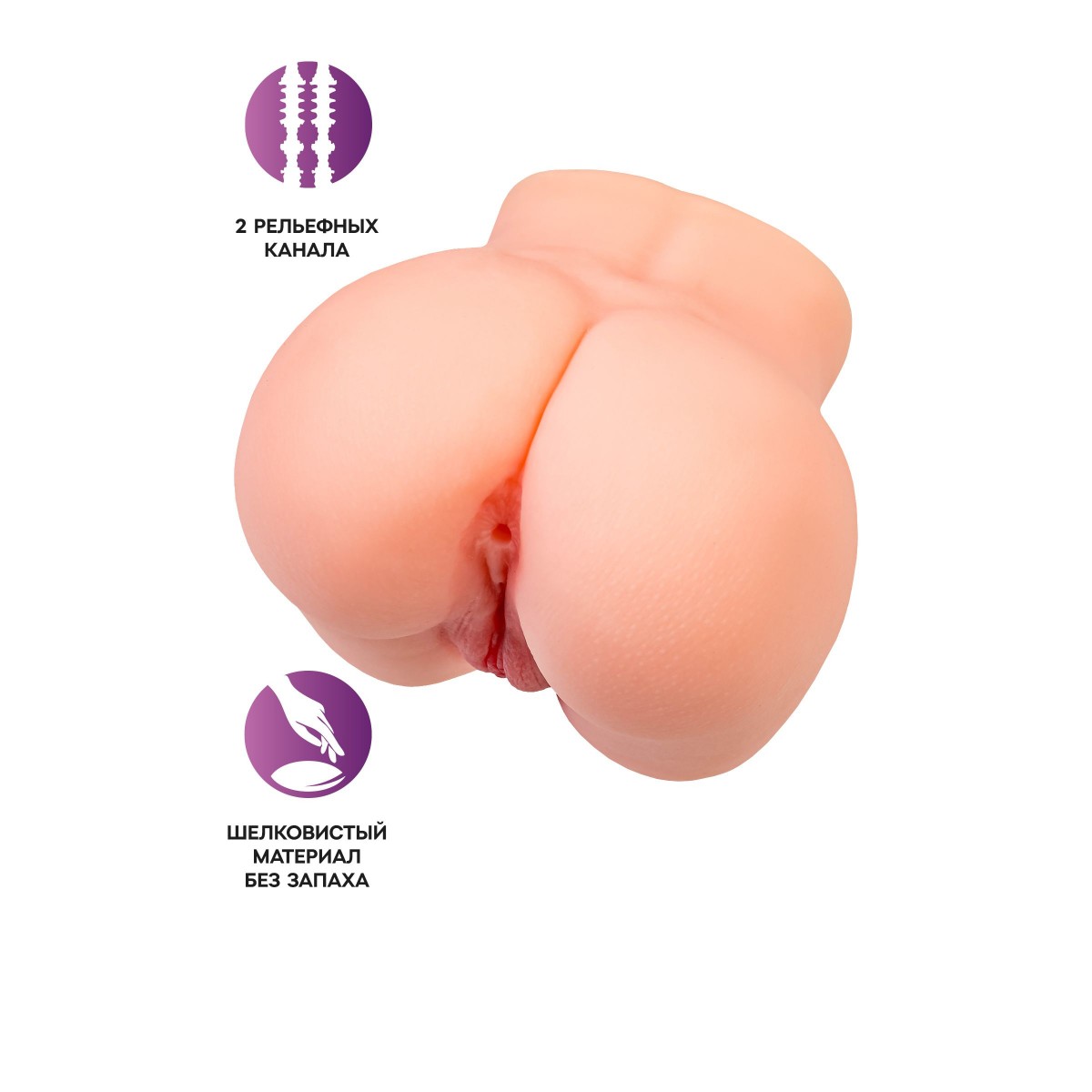 Попка идеальной формы весом 1,6 кг повторяет изгибы женского тела и таит в себе море удовольствия.Шелковистый материал напоминает мягкую женскую кожу.Для секса предусмотрено 2 анатомических отверстия с дополнительной стимуляцией: вагинальное и анальное. Размеры - 13 х 13 х 11,5 см.