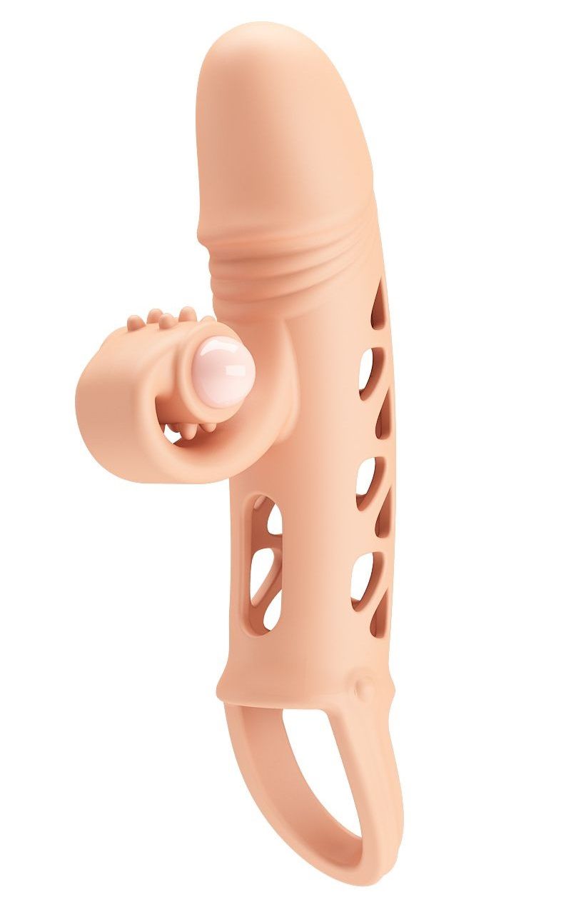 Вибронасадка на пенис – это отличное и безопасное средство увеличить половой член, продлив при этом секс и подарив партнерше новые эмоции. Она изготовлена из ТПЕ и фиксируется на месте с помощью петельки. Длина без подхвата - 15 см. Внутренний диаметр - 3 см.