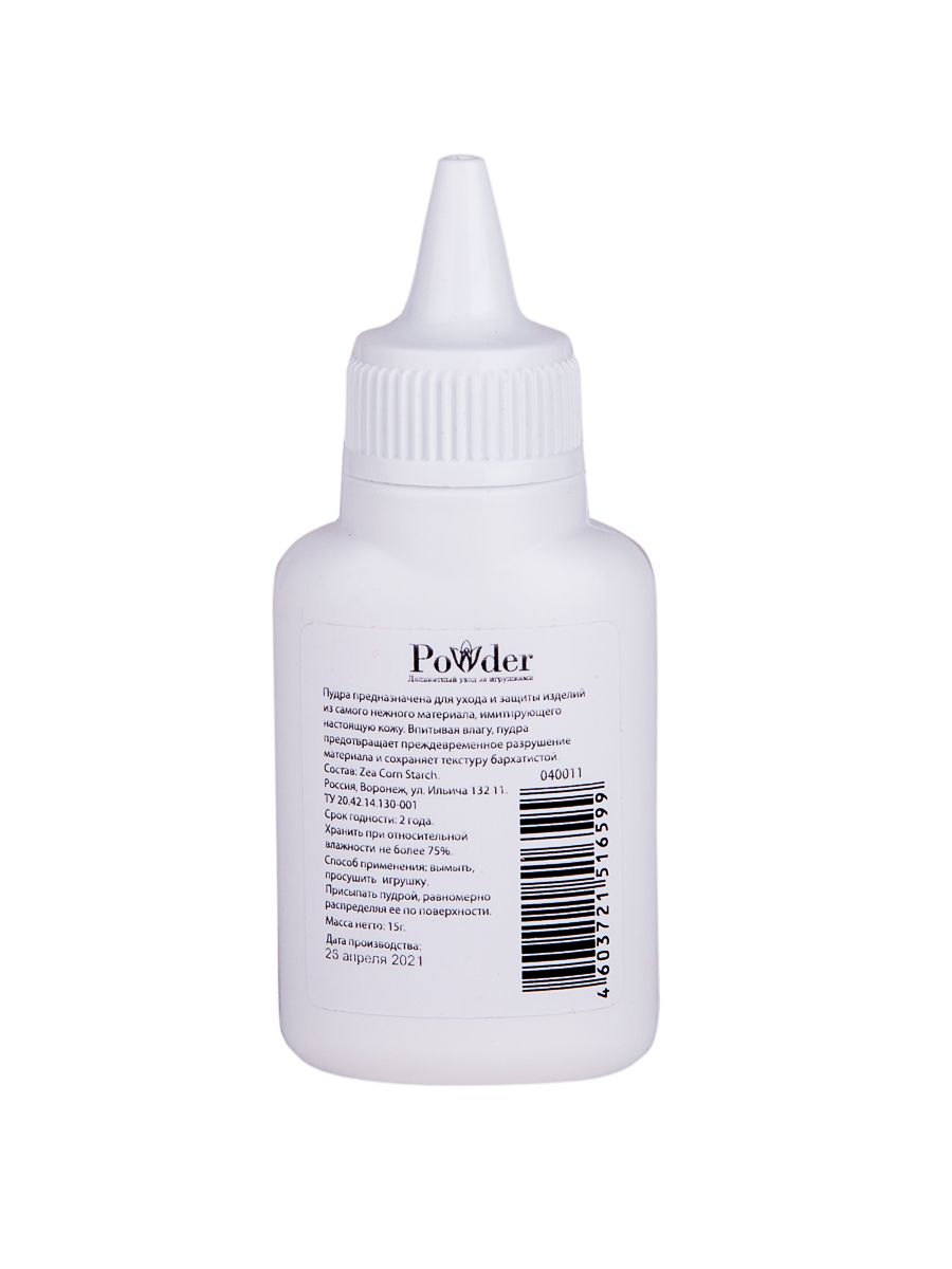 Пудра предназначена для ухода и защиты изделий из самого нежного материала, имитирующего настоящую кожу. Впитывая влагу, пудра предотвращает преждевременное разрушение материала и сохраняет текстуру бархатистой. Способ применения: вымыть и просушить игрушку с помощью салфетки.