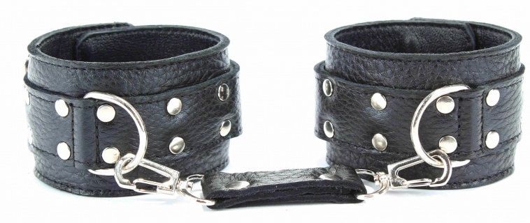 Роскошные кожаные наручники обеспечат надежную фиксацию Вашего партнера. Сила сжатия фетиш-изделие регулируется с помощью ремня. Кожаные наручники декорированы заклепками, они придают поножам соблазнительный внешний вид. Благодаря встроенным кольцам, фетиш-изделие позволяет регулировать длину с помощью цепи с металлическими карабинами. Это аксессуар для тех, кто хочет предаться власти сексуальных фантазий своего сумасшедшего партнера. Длина цепочки: 12-25 см.