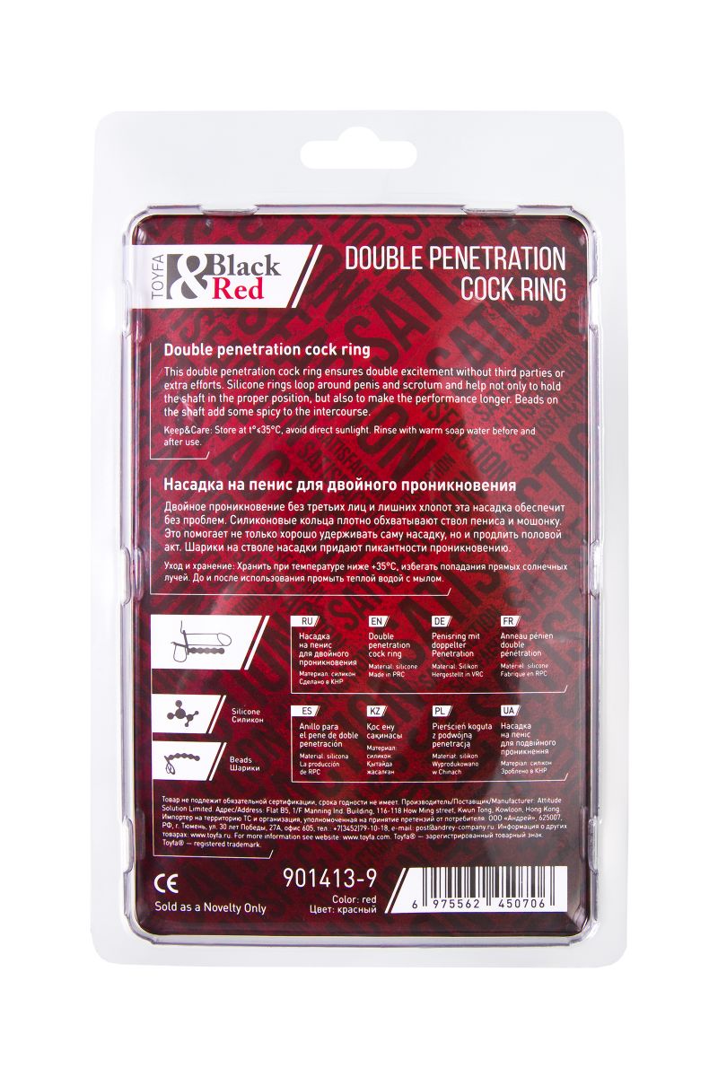 Рельефная насадка на пенис для двойного проникновения – это отличный выбор для любителей продвинутых сексуальных развлечений без участия третьих лиц. Насадка надежно фиксируется на теле двумя кольцами, которые плотно обхватывают ствол пениса и мошонку. Это оказывает дополнительный эффект для продления полового акта, а партнер в это время получает в два раза больше удовольствия, что ускоряет приближение оргазма. Шарики на стволе насадки придают пикантности проникновению. Пять анальных бусин стимулируют чувствительный сфинктер, усиливая наслаждение принимающего партнера. Материал насадки – гипоаллергенный медицинский силикон. Рабочая длина - 12,5 см. Диаметр колец - 3,7 и 4,5 см.