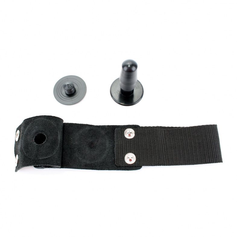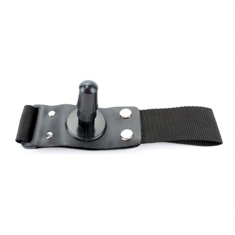 Небольшой по размерам интим-девайс закрепляется на ноге, размер легко регулируется с помощью ремешков. Штырек закреплен на кожаной подложке. Ширина ленты - 5 см.
