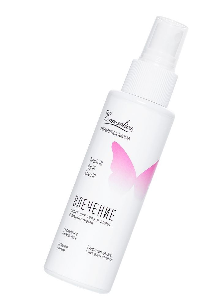 Добавь в свой ежедневный уход капельку соблазна с коллекцией спреев для тела и волос Eromantica Aroma. Спрей для тела и волос с феромонами Eromantica «Влечение» — твой заряд сексуальности и уверенности на весь день. Он быстро проникает в кожу и волосы, насыщает их влагой и придает ощущение свежести. Сладкий манящий аромат окутывает тело фруктовыми нотками папайи и природными феромонами, привлекая восхищенные взгляды. Как применять: встряхни, распыли на тело и волосы после душа или в течение дня. Избегай попадания в глаза. Храни при комнатной температуре вдали от прямых солнечных лучей. Встряхивай перед каждым применением.