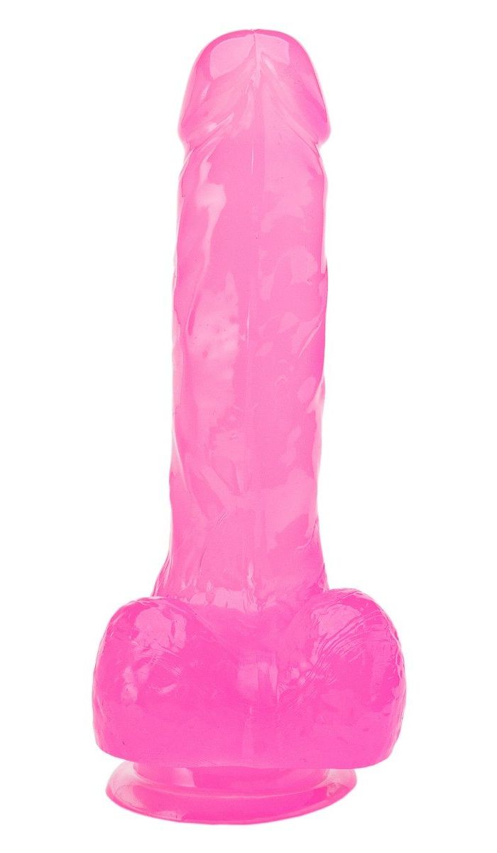 Розовый реалистичный фаллоимитатор на присоске для фиксации на плоскости. Имеет богатый рельеф поверхности. В комплекте мешочек для бережного хранения.
